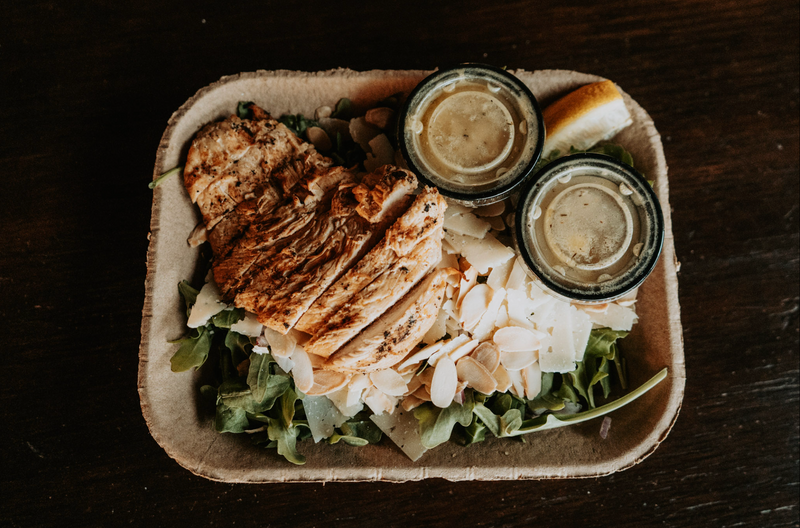 arugula topped with almonds, parmesan, red onion, and cheese with lemon vinaigrette. Small or Large